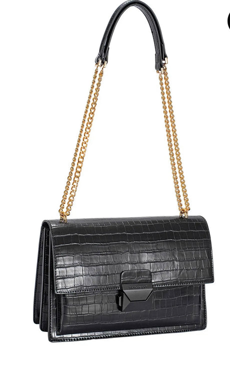 Lola Flap Handbag with Sliding Chain - Black