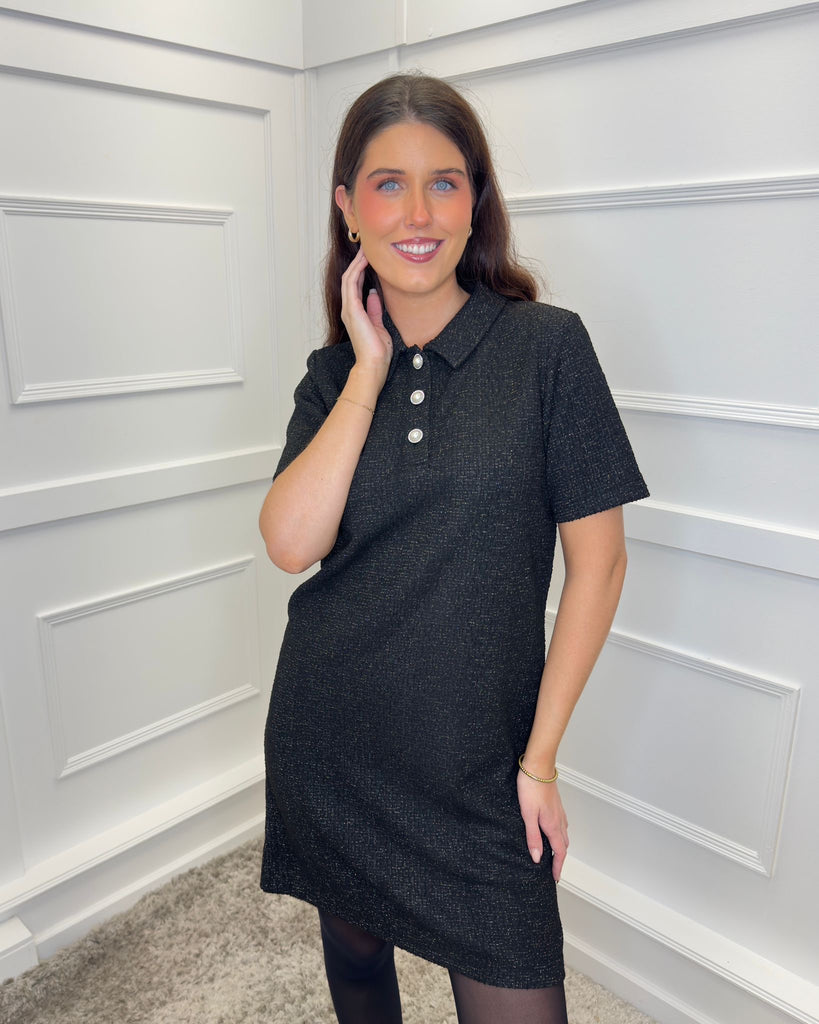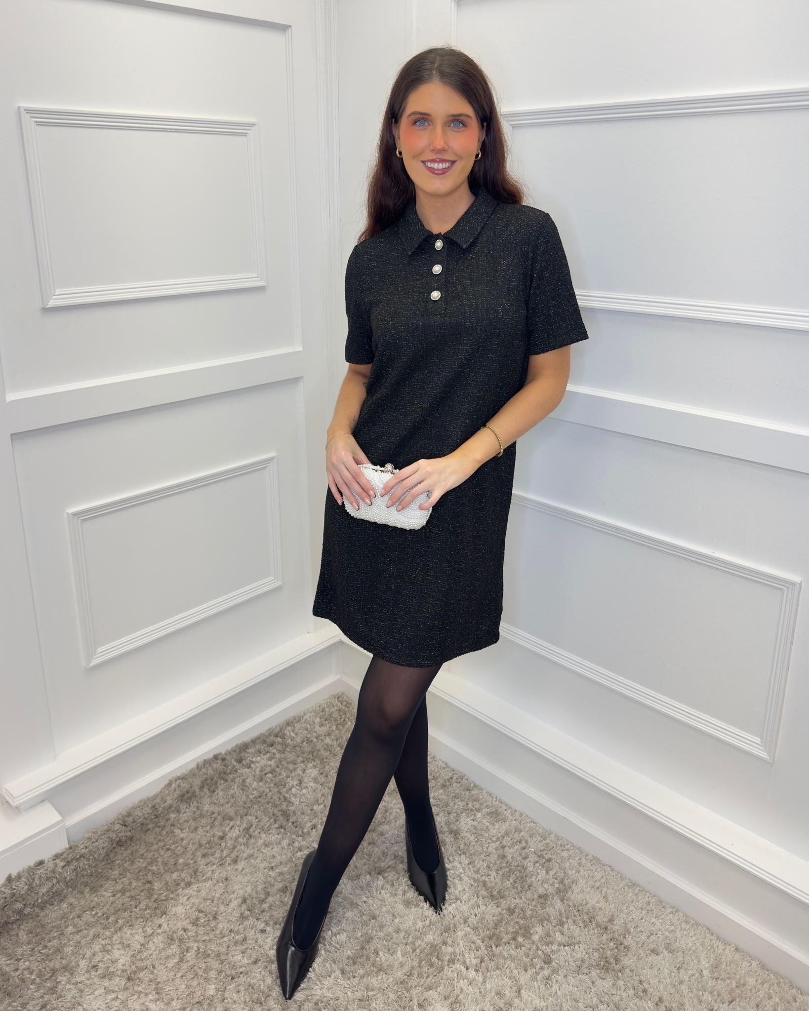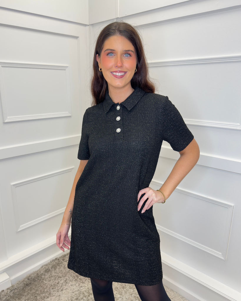 B YOUNG Panthea Short Tweed Dress - Meteorite Black