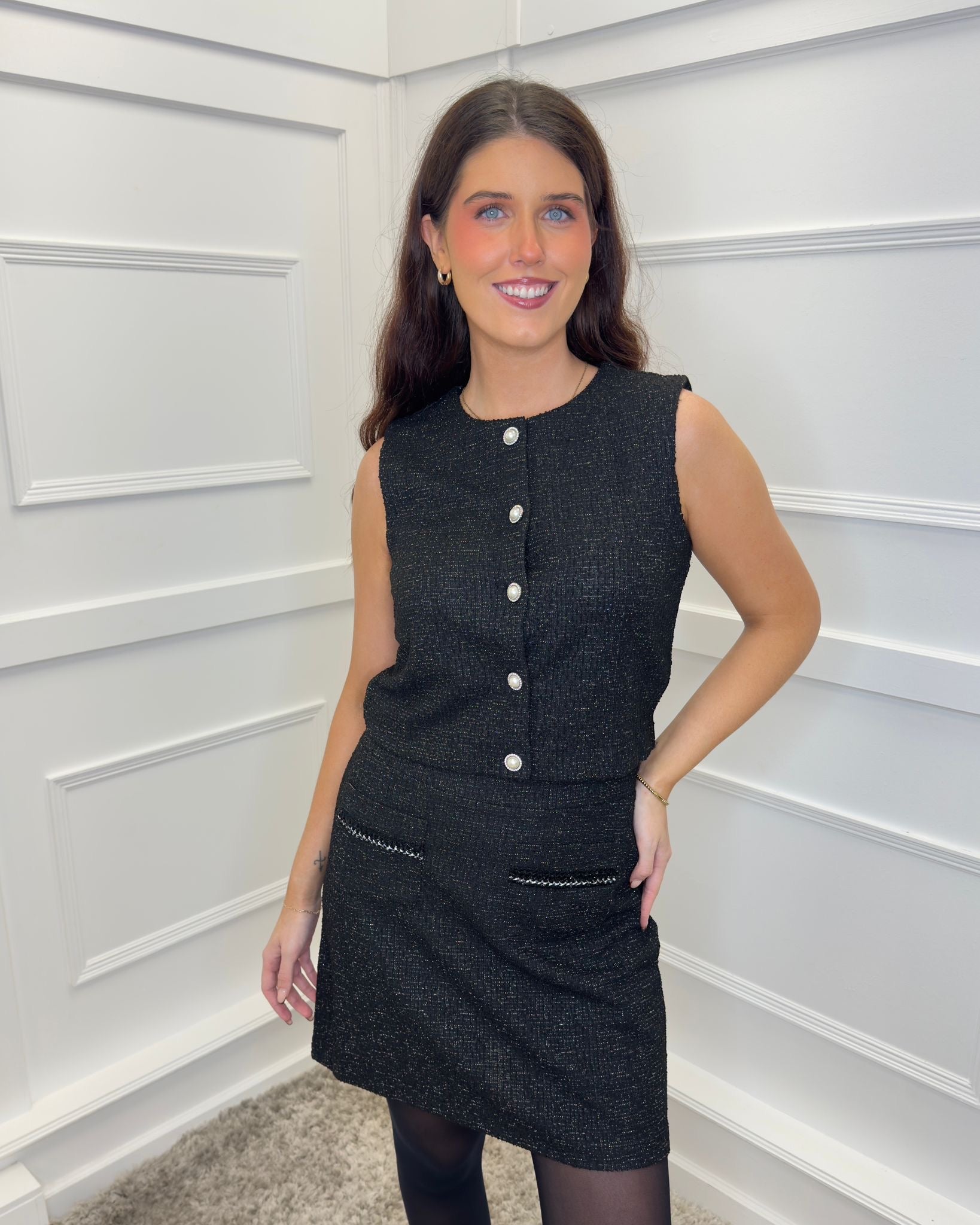 B YOUNG Panthea Tweed Vest - Meteorite Black