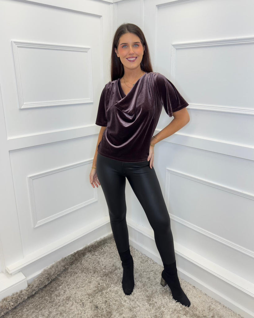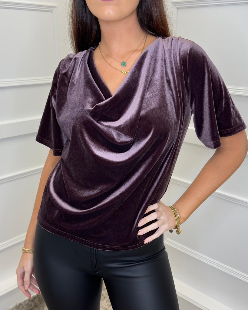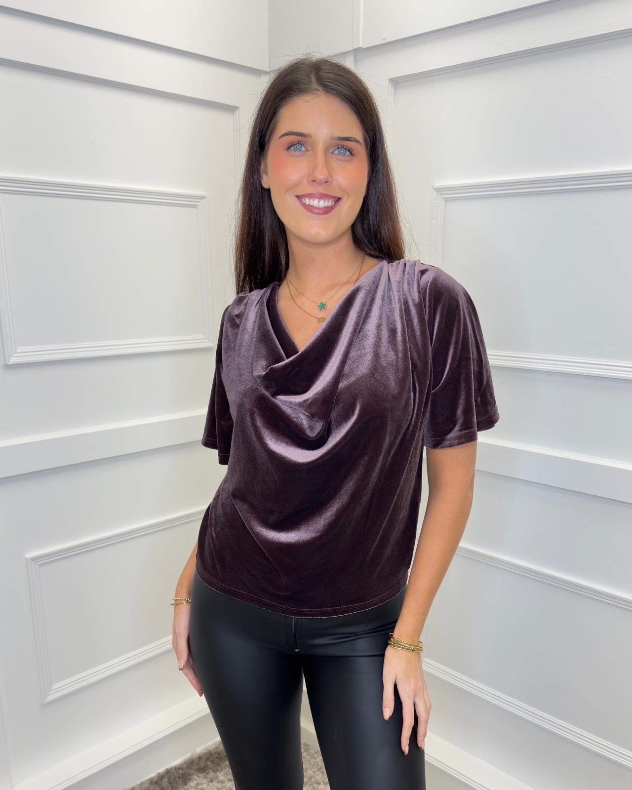 B YOUNG Perlina Draping Velvet Cowl Blouse - Fudge