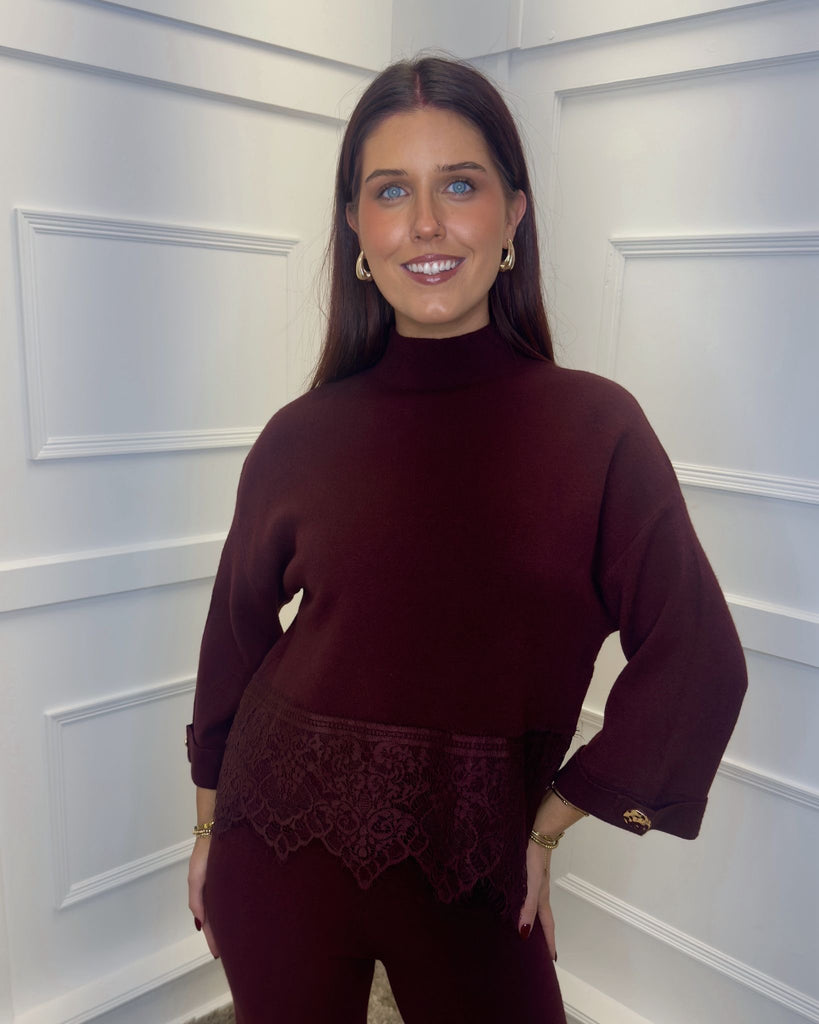 Aria Premium Knit Two Piece - Burgundy