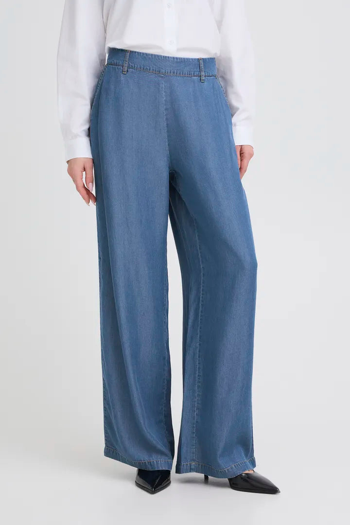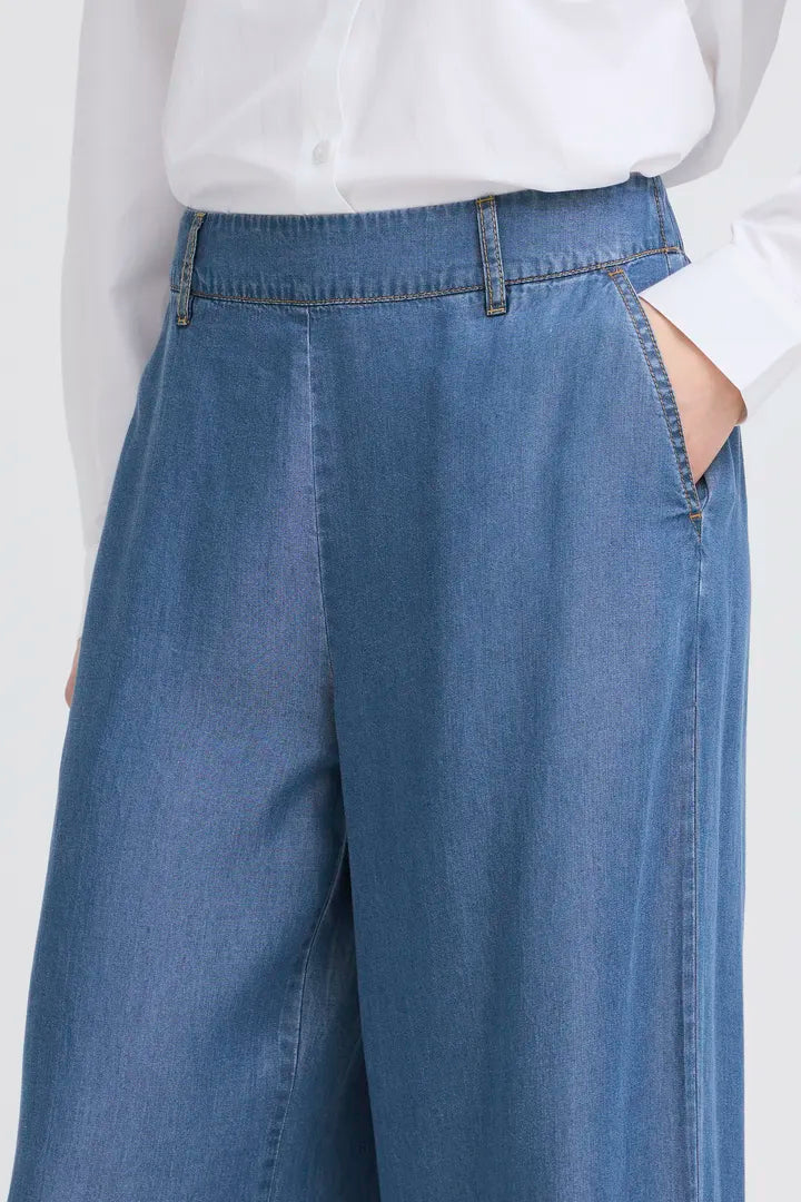 B YOUNG Kosmo Wide Leg Pants - Mid Blue Denim