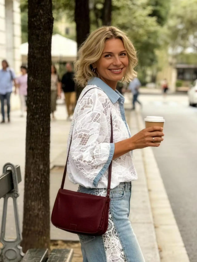 Discover spring's most captivating piece with this inventive short-sleeve shirt that marries texture and contrast beautifully. Delicate crochet eyelet fabric creates an airy, sheer aesthetic, while denim accents on the collar, placket, and cuffs ground the design with contemporary edge. The result is an effortlessly elegant statement piece that works equally well dressed up for occasions or paired casually with your favourite denim. Original, versatile, and undeniably on-trend.