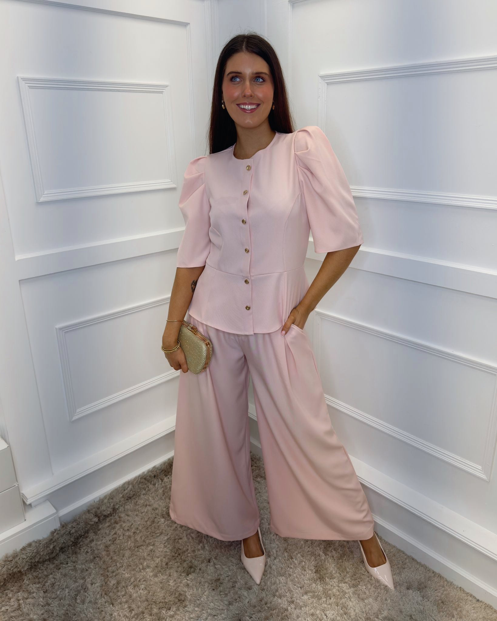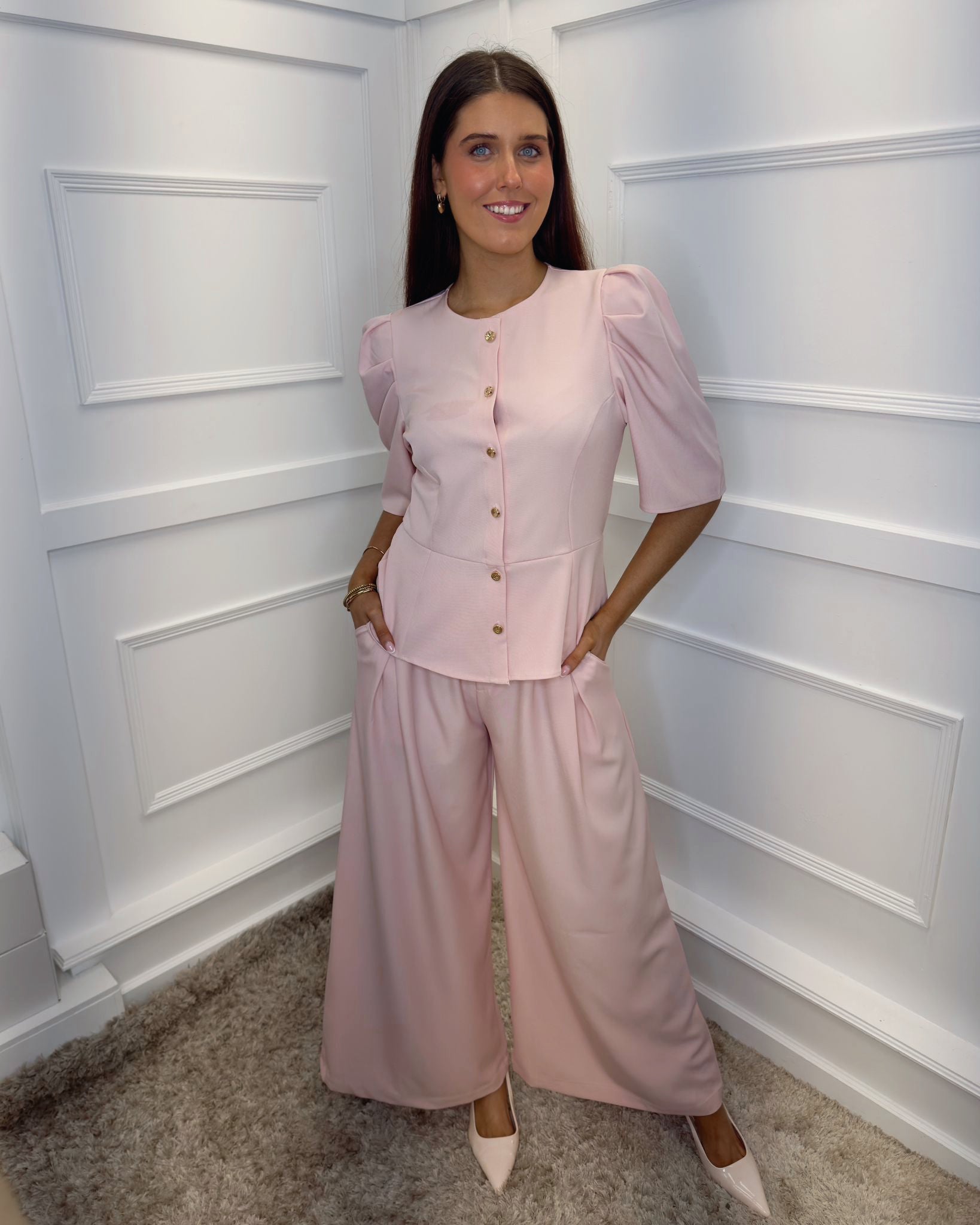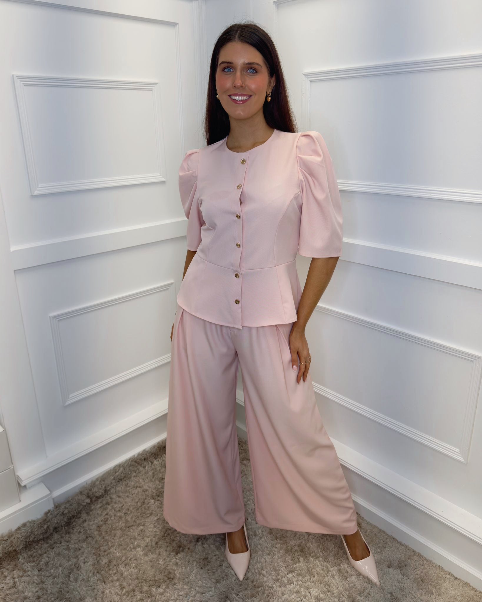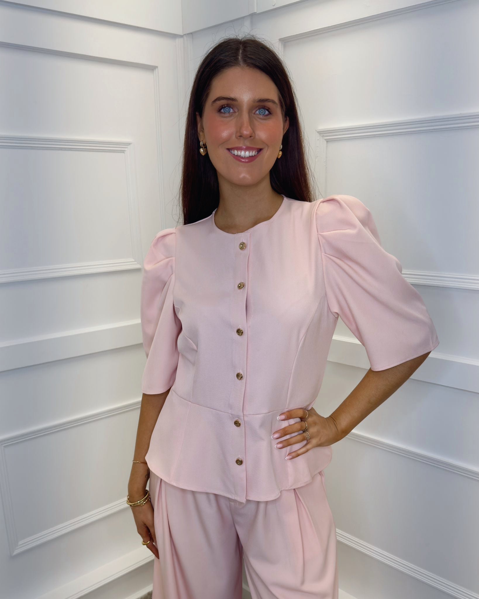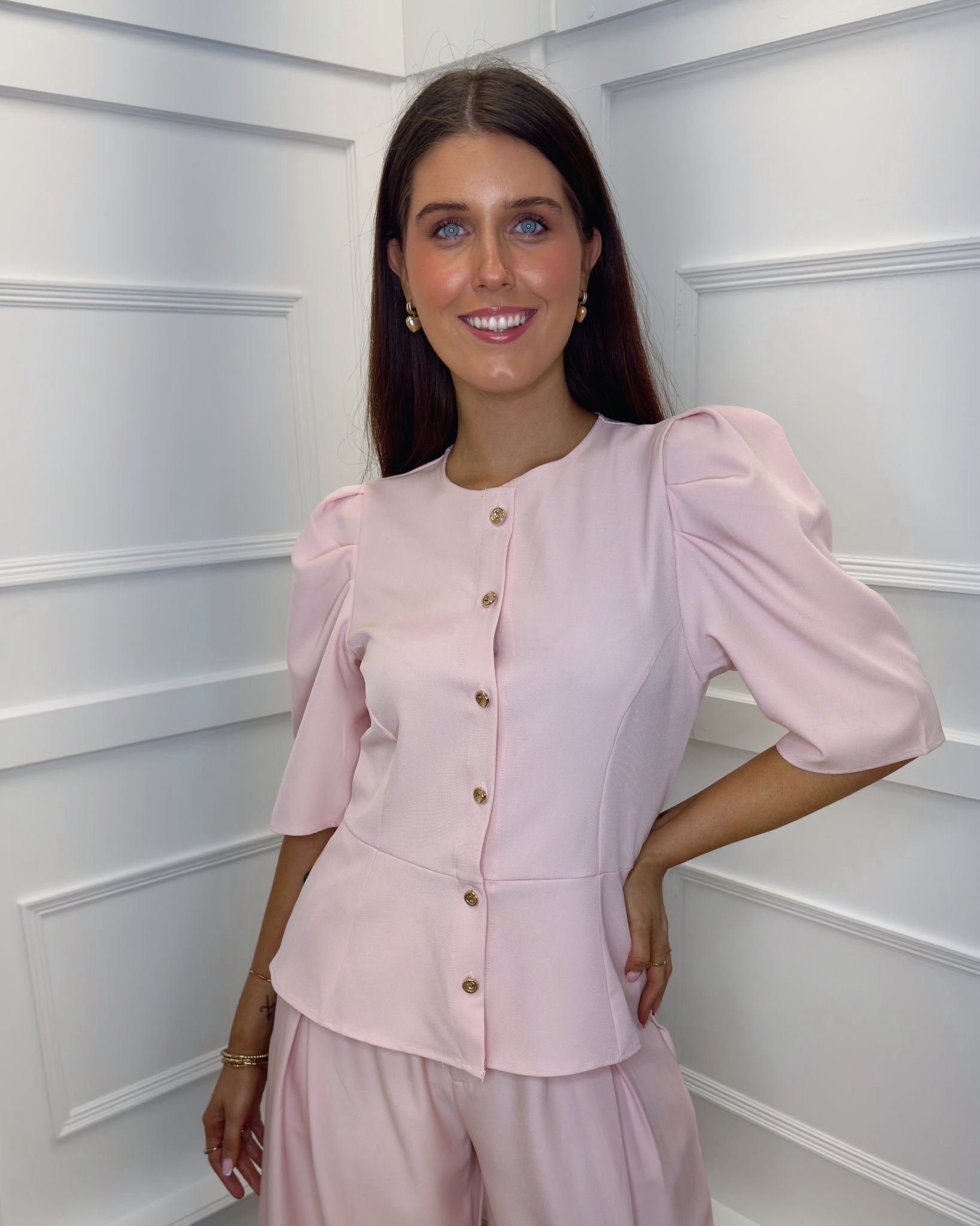 Vienna Puff Sleeve Tailored Top - Blush Pink