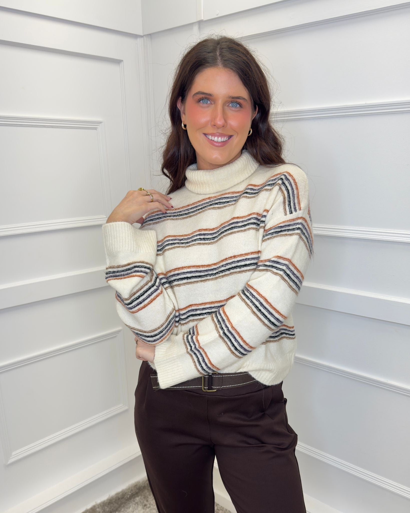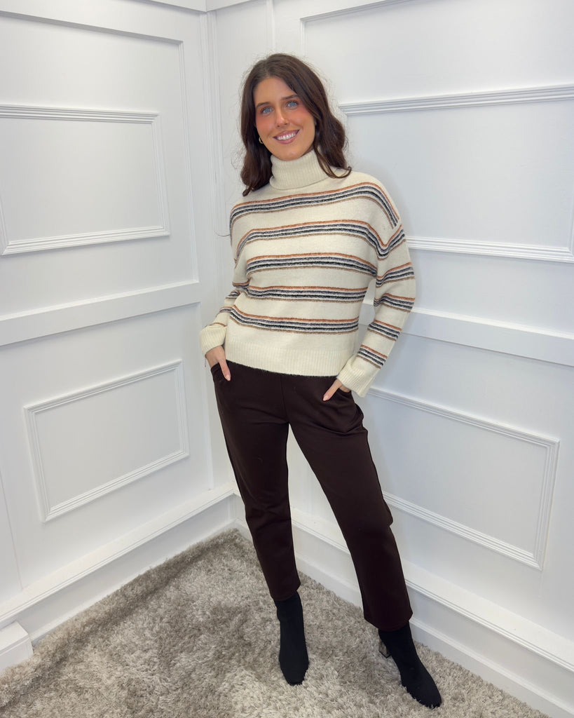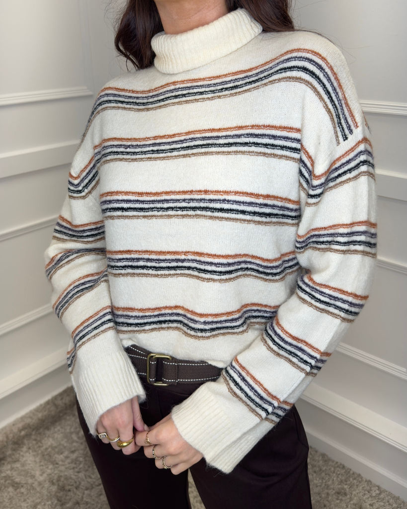 B YOUNG Monna Polo Neck Knit - Birch Melange Stripe