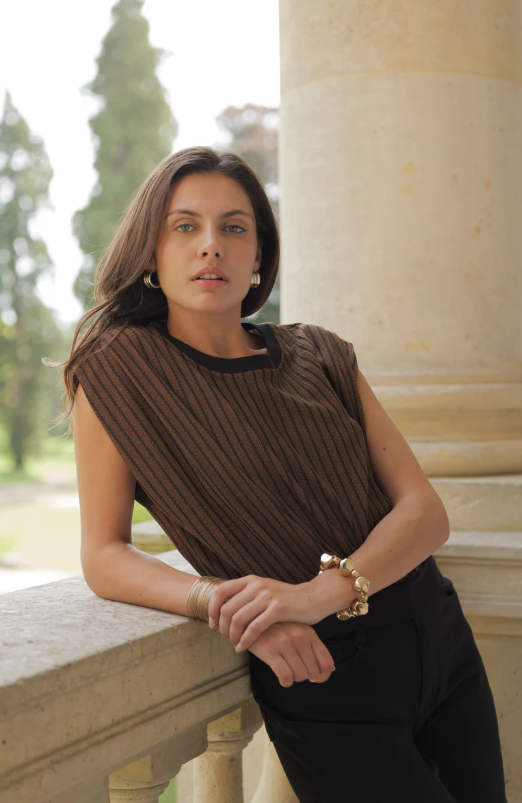 Elaine Casual Fine Knit Top - Brown