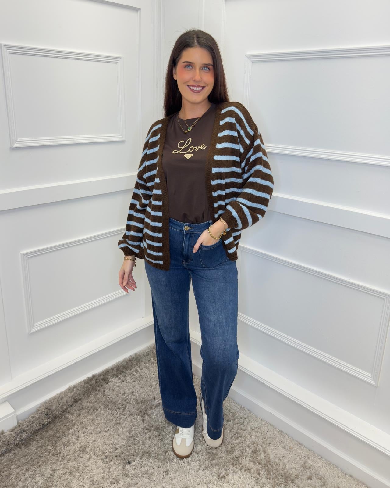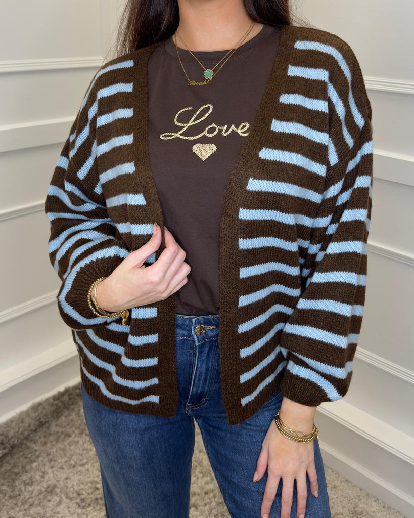 Ge44orgie Stripe Cardigan - Chocolate Brown & Blue