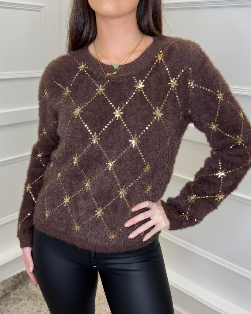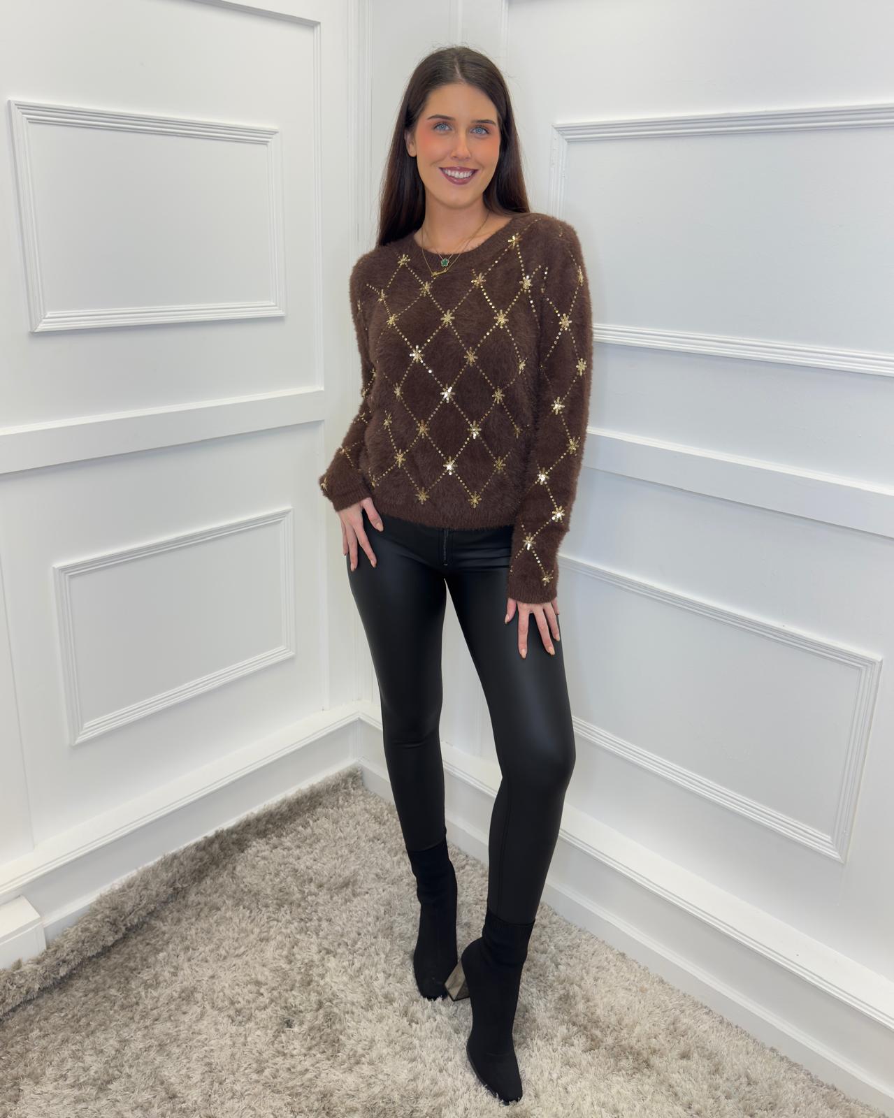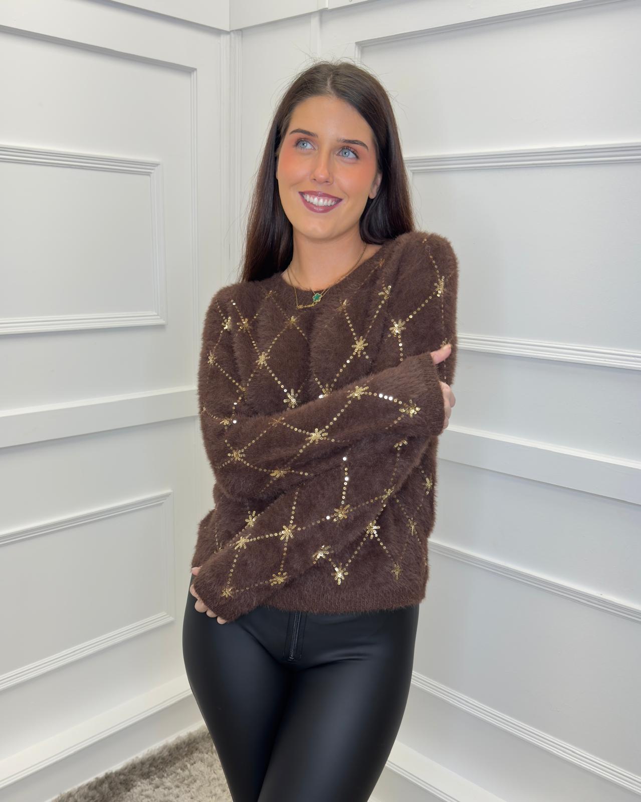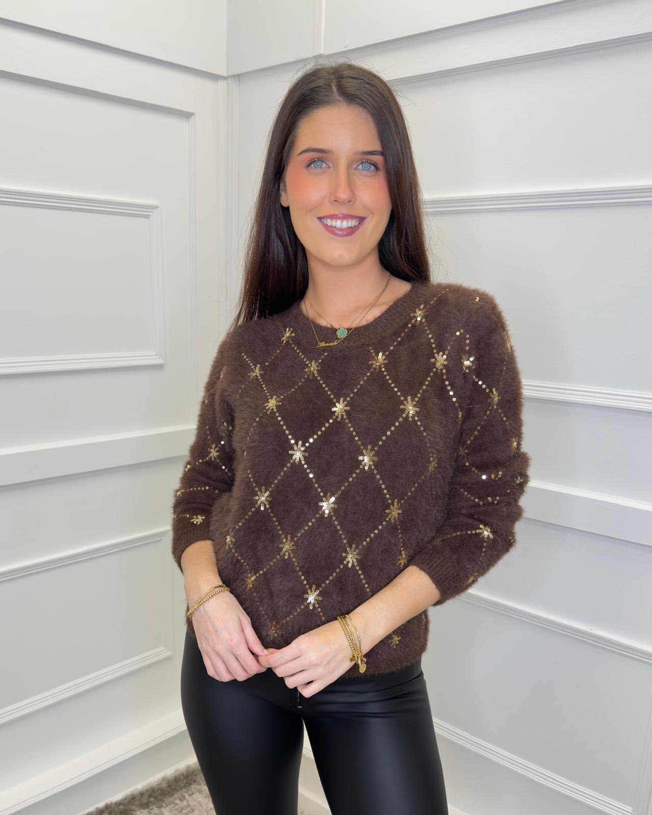 Sandra Soft Knit with Gold Sequin Detail - Dark Brown