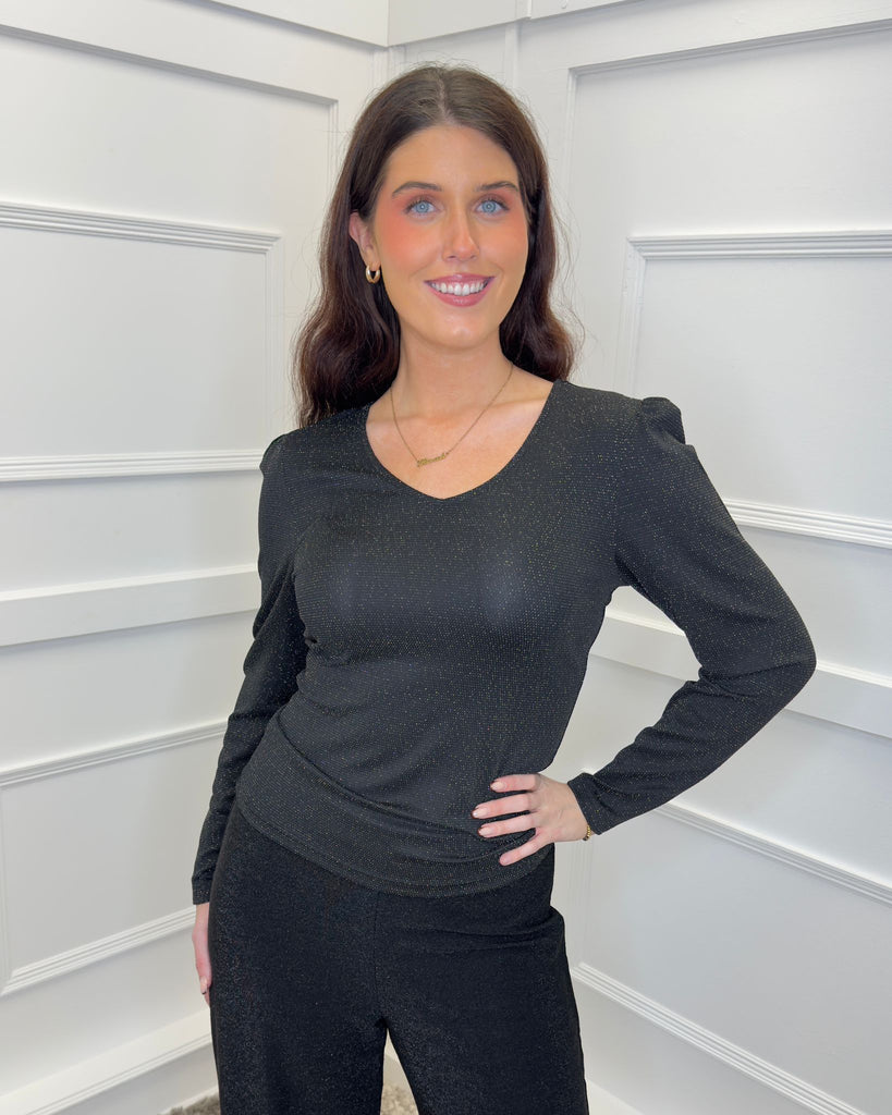 B YOUNG Syrene Shimmer Top - Meteorite Black