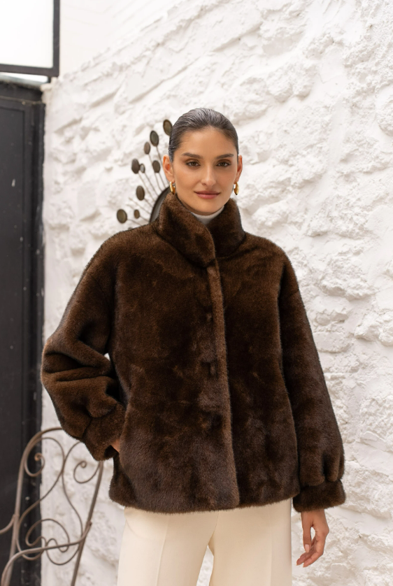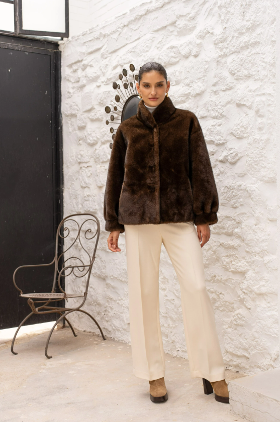 Make a statement with the Alva Faux Fur Coat in elegant ecru—a luxurious layer that wraps you in sumptuous comfort. This refined piece features a striking high collar and generously cut silhouette that drapes beautifully, while hidden snaps ensure a seamless, polished appearance. Long sleeves finished with softly gathered cuffs add subtle sophistication, and the ultra-plush faux fur with its signature peach skin effect feels as indulgent as it looks. Whether you're heading to a special occasion or elevating your everyday style, this cocooning masterpiece delivers timeless elegance with undeniable warmth.
