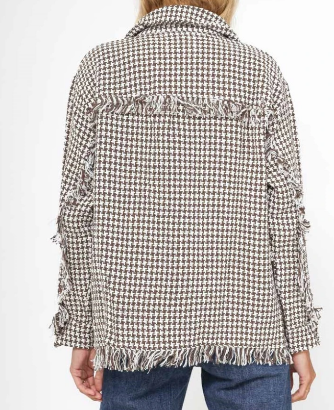 Amelia Houndstooth Fringe Overshirt - Brown