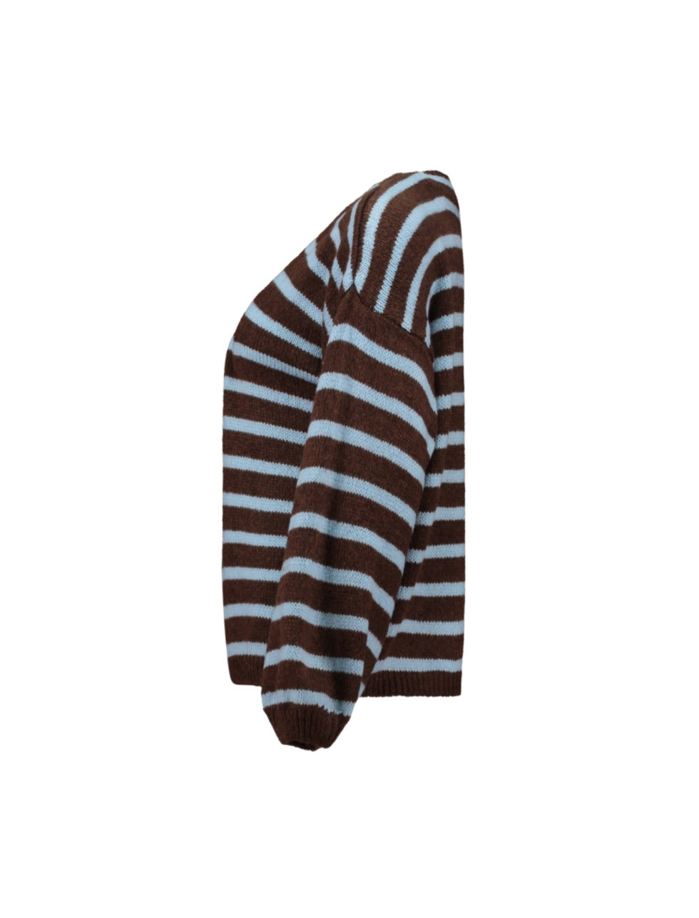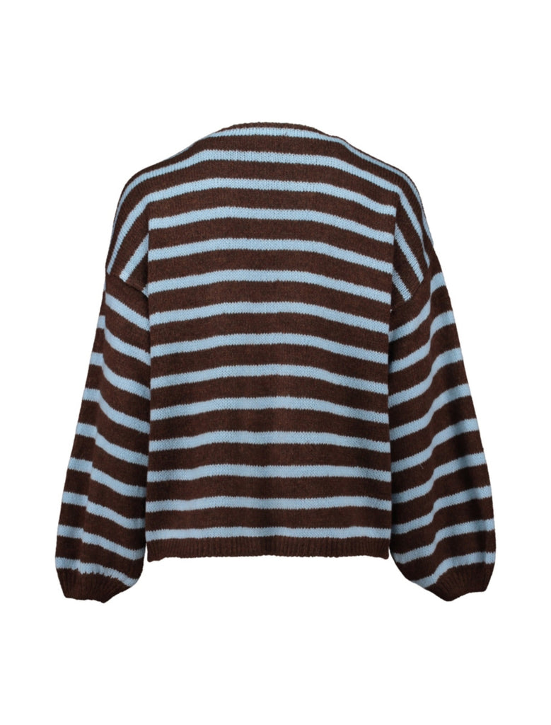Ge44orgie Stripe Cardigan - Chocolate Brown & Blue