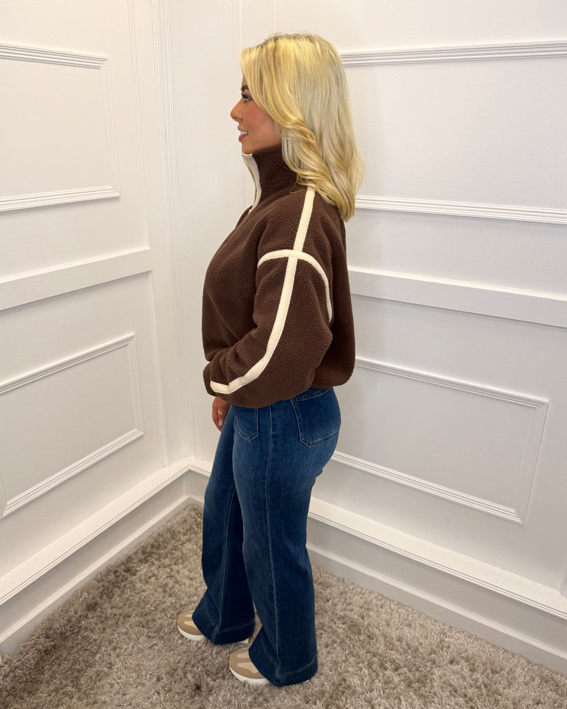 Lulu Contrast 1/4 Zip Fleece - Chocolate