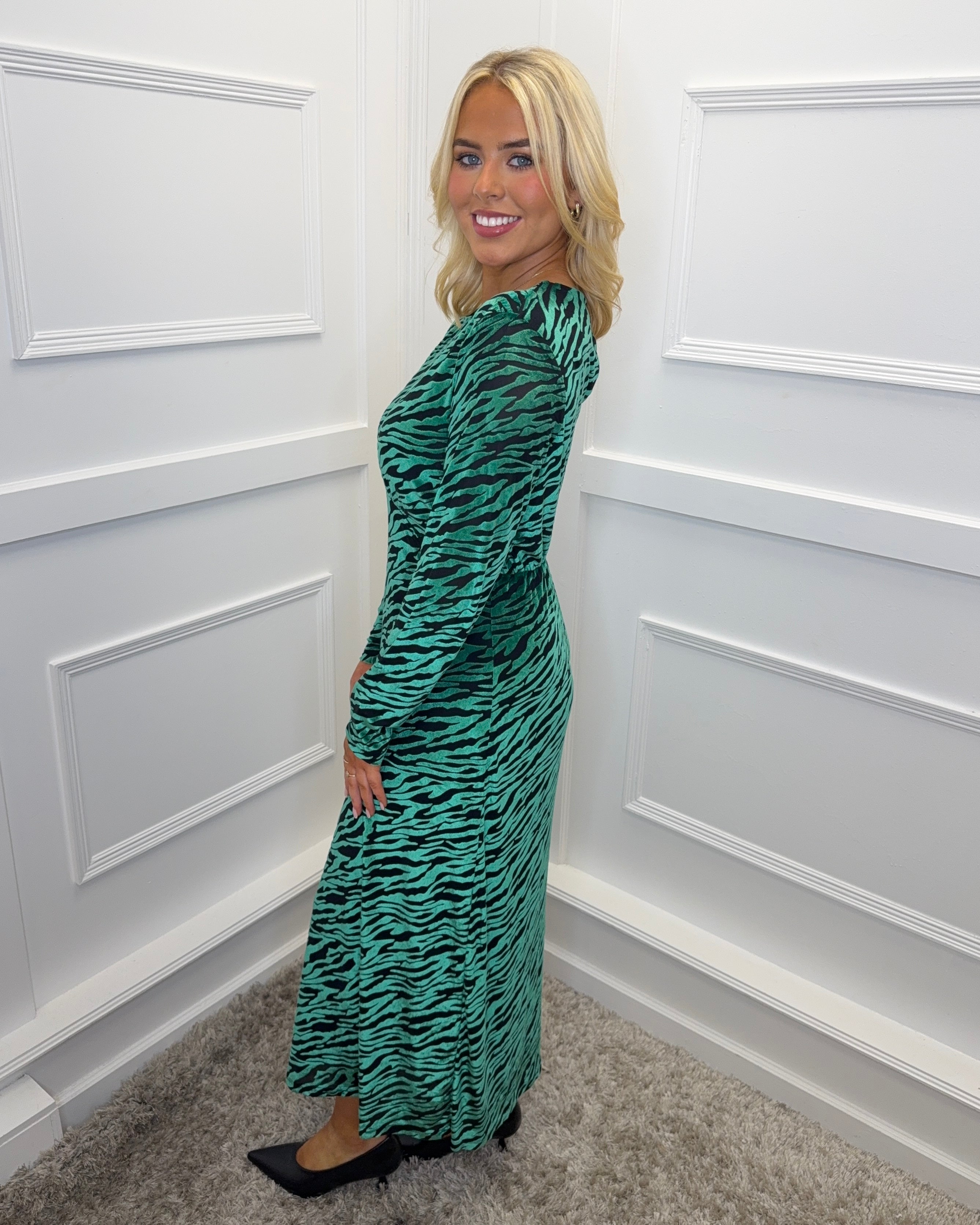 MARC ANGELO Velvet Midi Dress - Green & Black