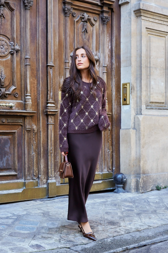 Sandra Soft Knit with Gold Sequin Detail - Dark Brown