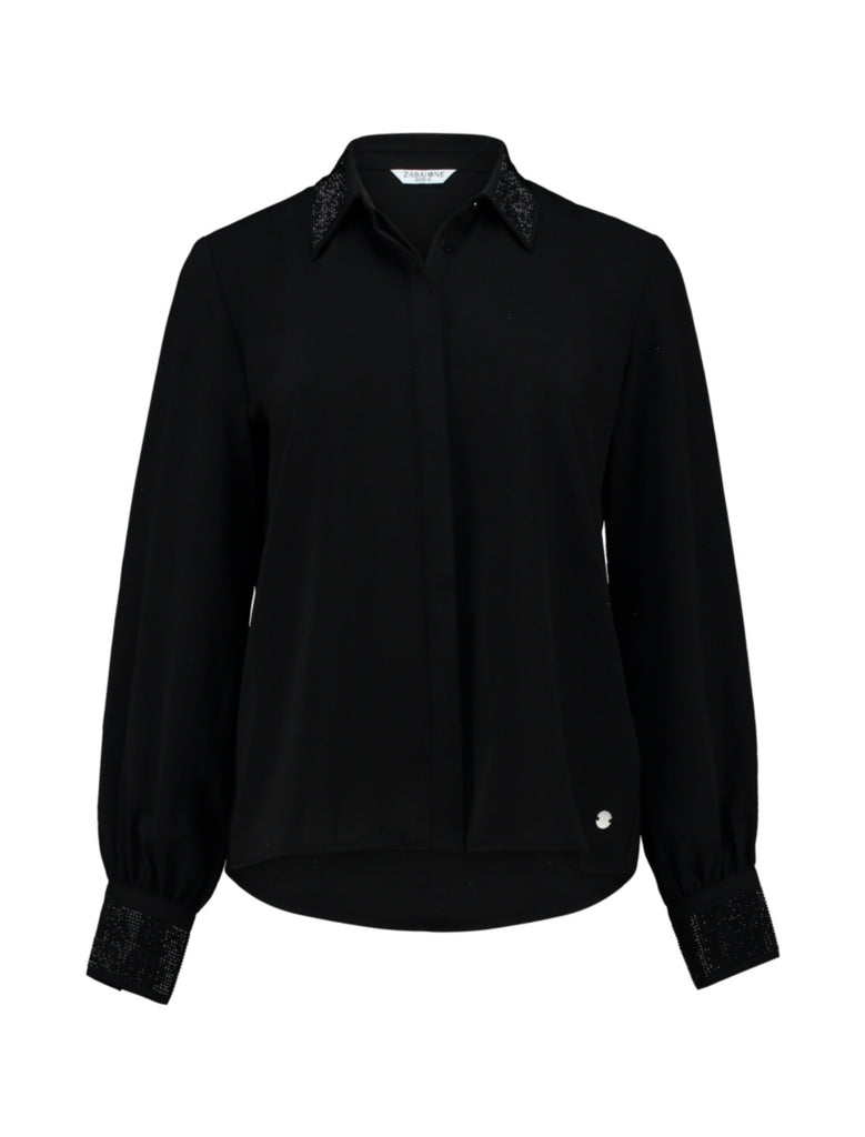 Ol44ina Shimmer Collar Detail Blouse - Black