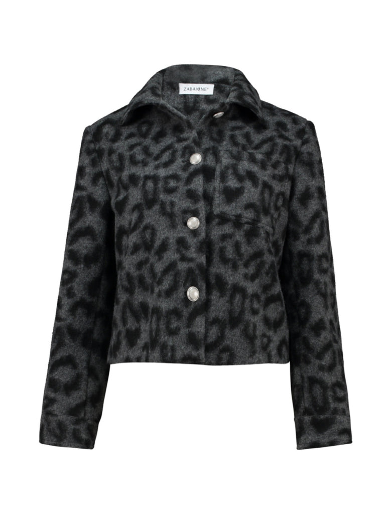 Ei44lish Button Up Collared Jacket - Grey Leopard