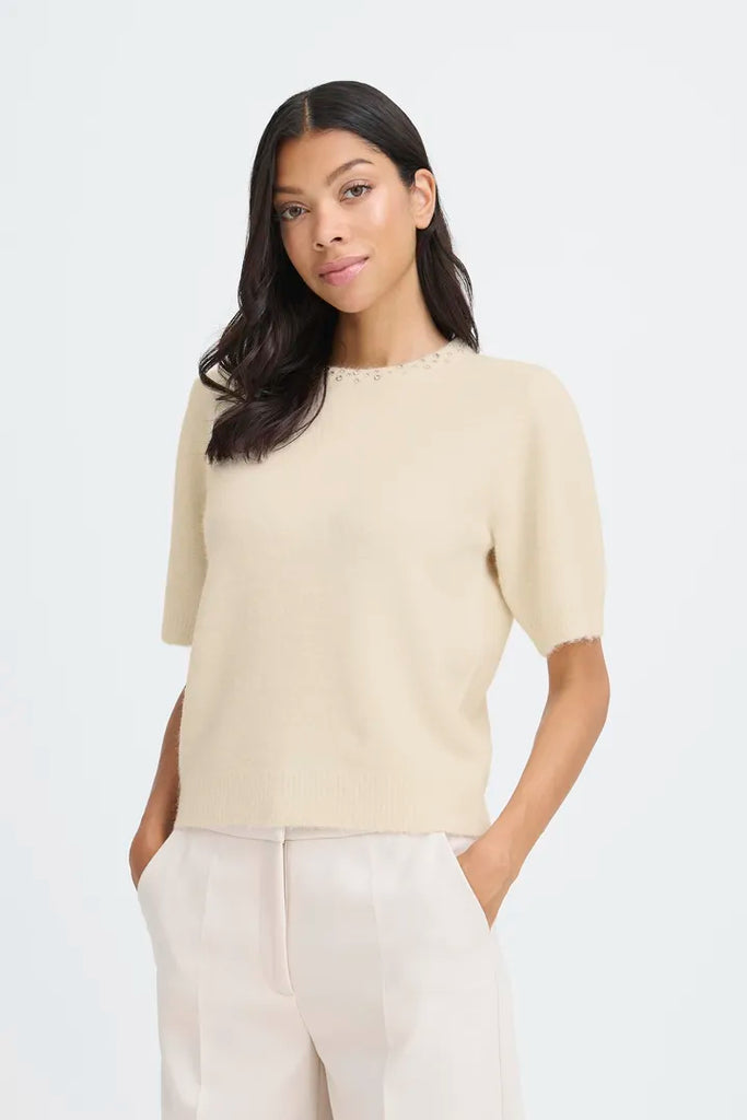 B YOUNG Omea Rhinestone Jumper - Oatmeal