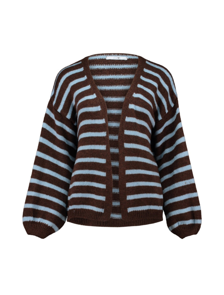 Ge44orgie Stripe Cardigan - Chocolate Brown & Blue