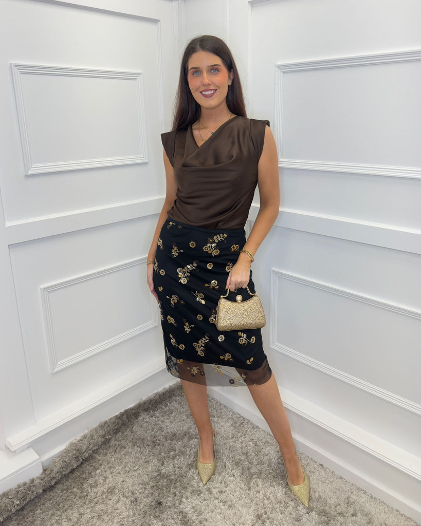 Sa44bini Corduroy Skirt - Dark Chocolate Brown