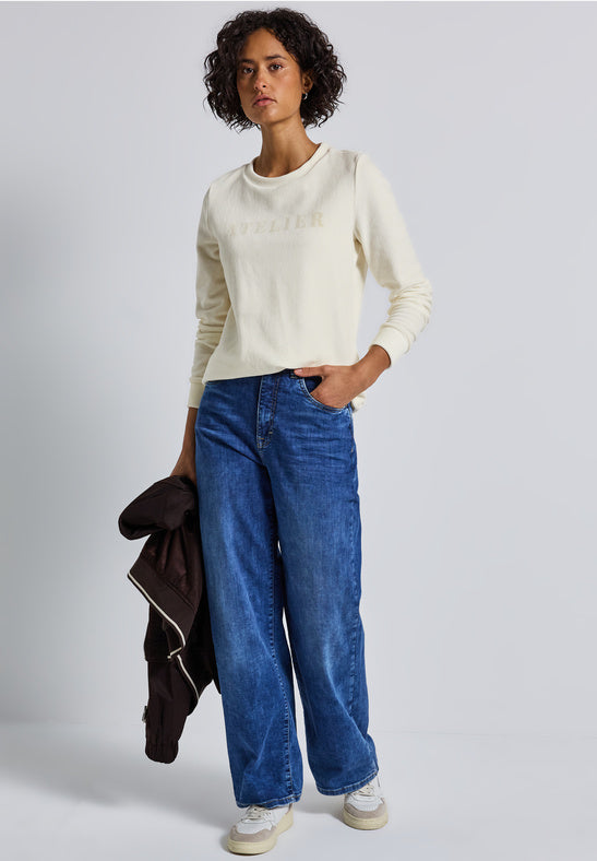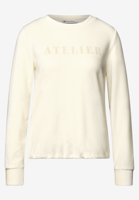 This women's fine corduroy shirt from Street One combines trendy materials with a fashion statement. The round neck and drawstring hem ensure a comfortable fit, while the wording artwork adds a stylish touch. The fine corduroy feels pleasantly soft—perfect for special everyday looks.