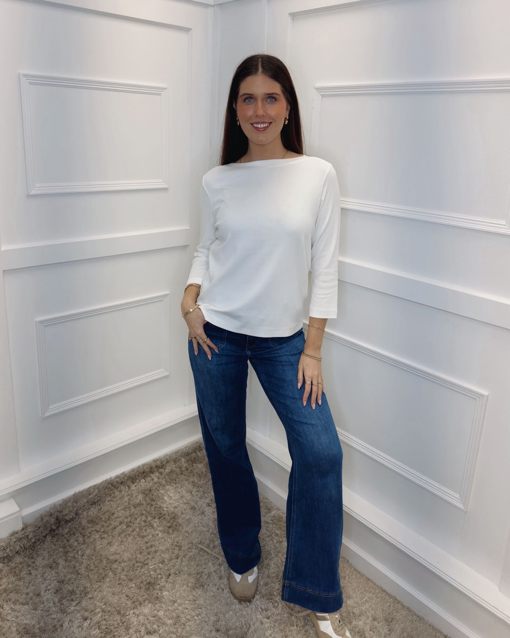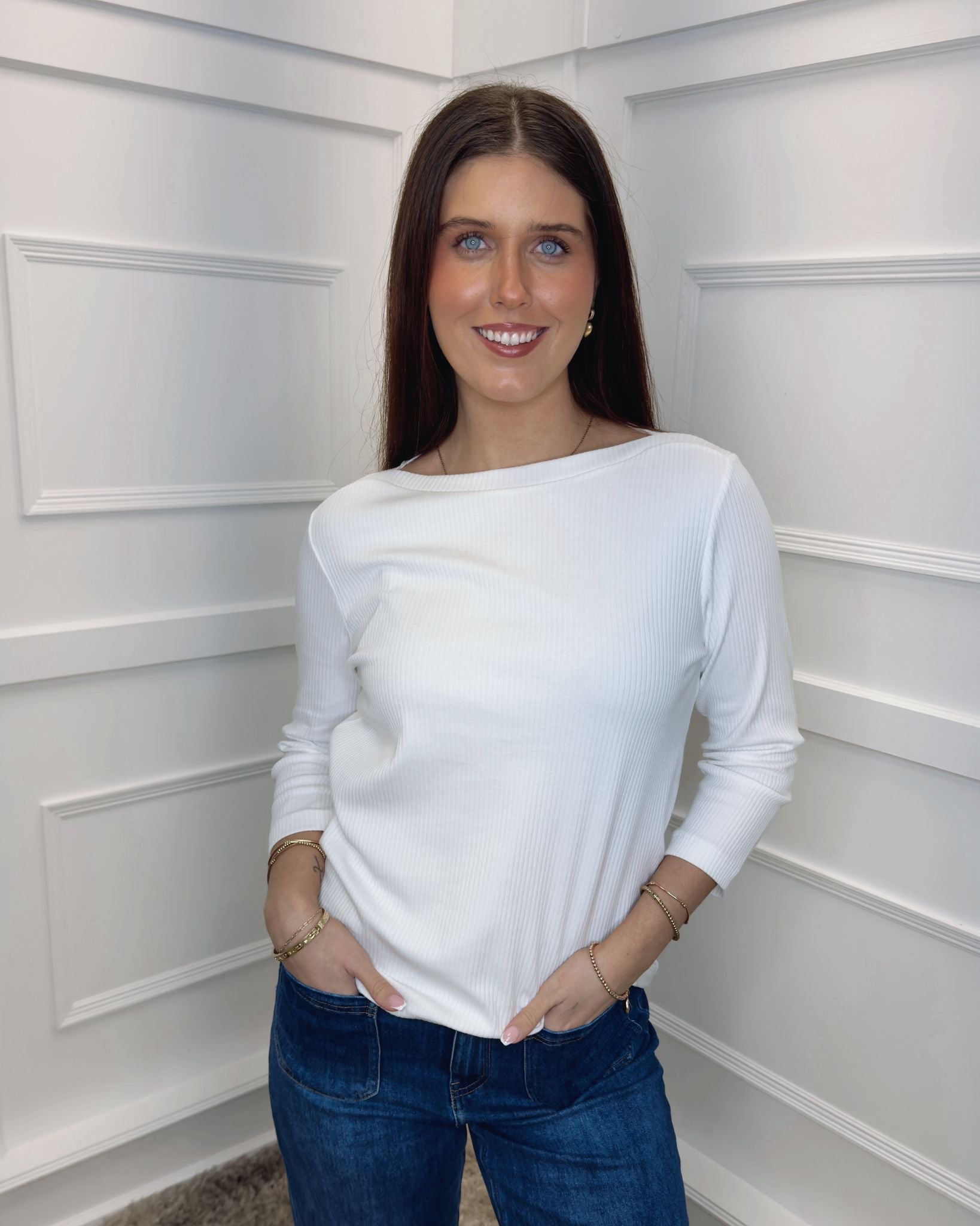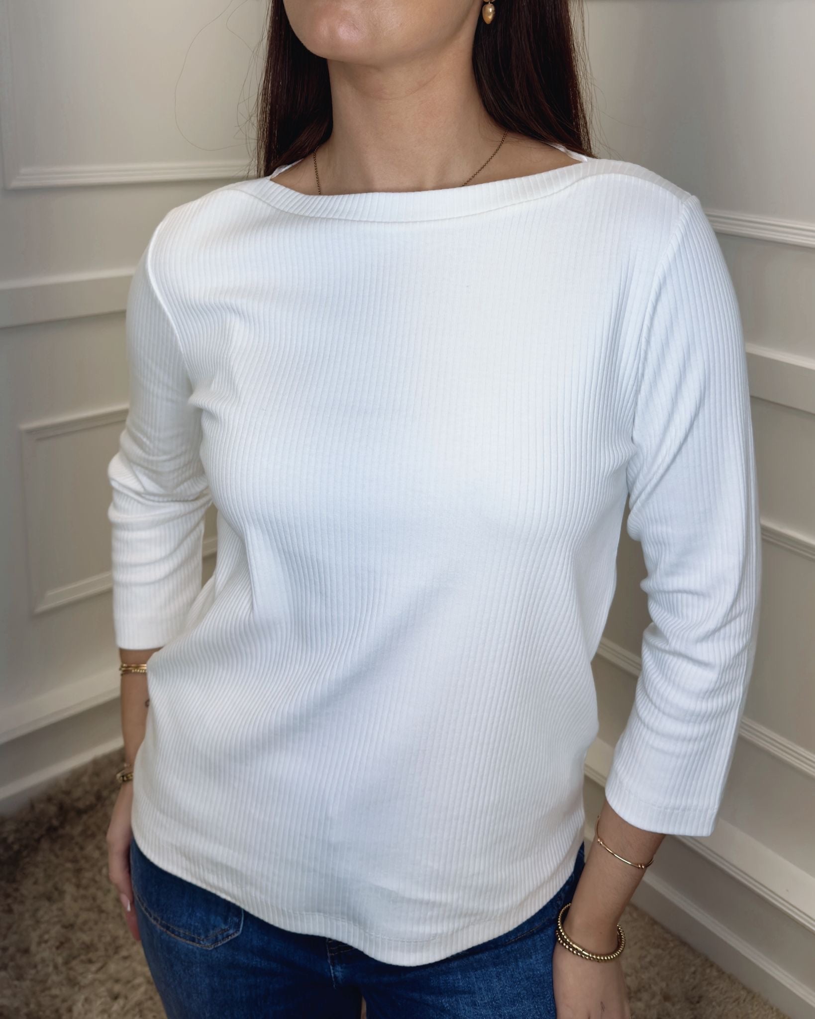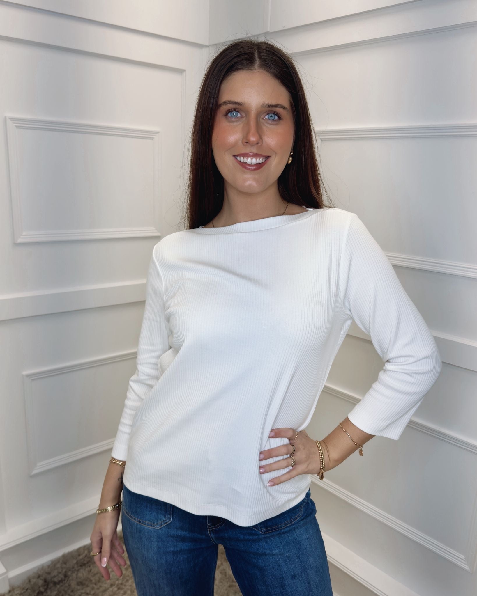 STREET ONE Rib Structure U-Boat Shirt - Off White