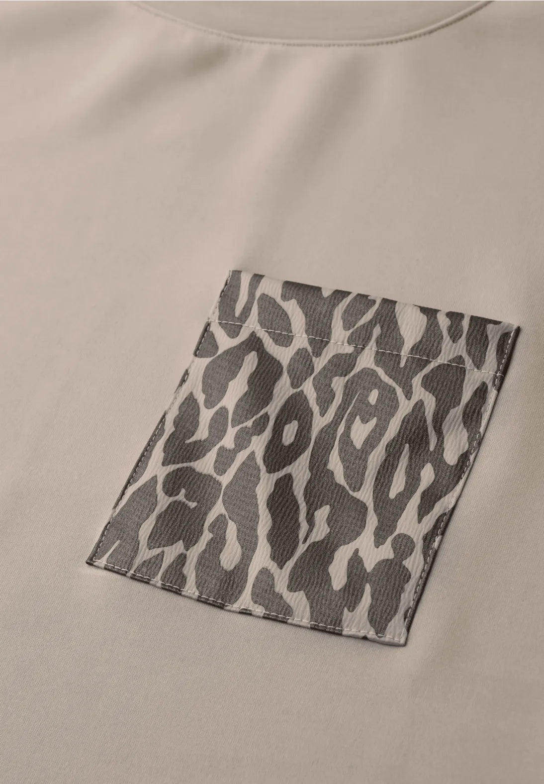 STREET ONE Silk Look Shirt with Printed Pocket - Cotton Beige