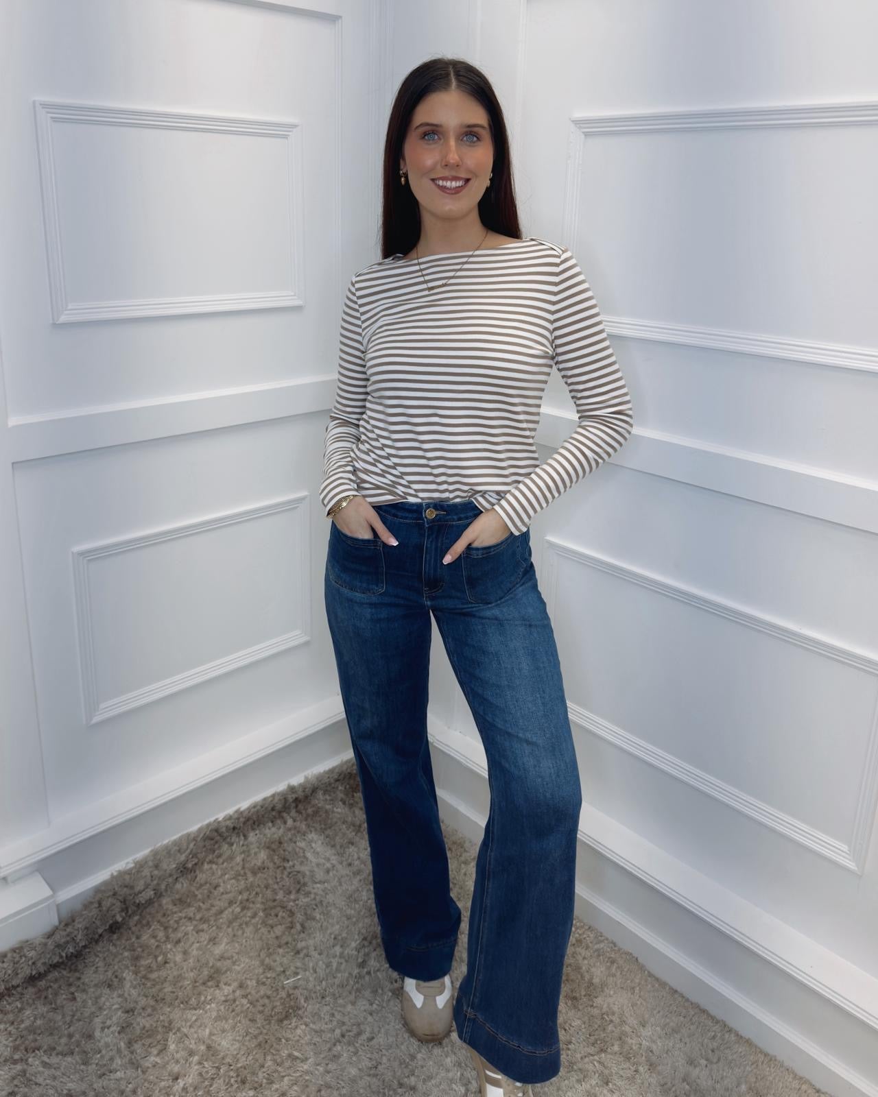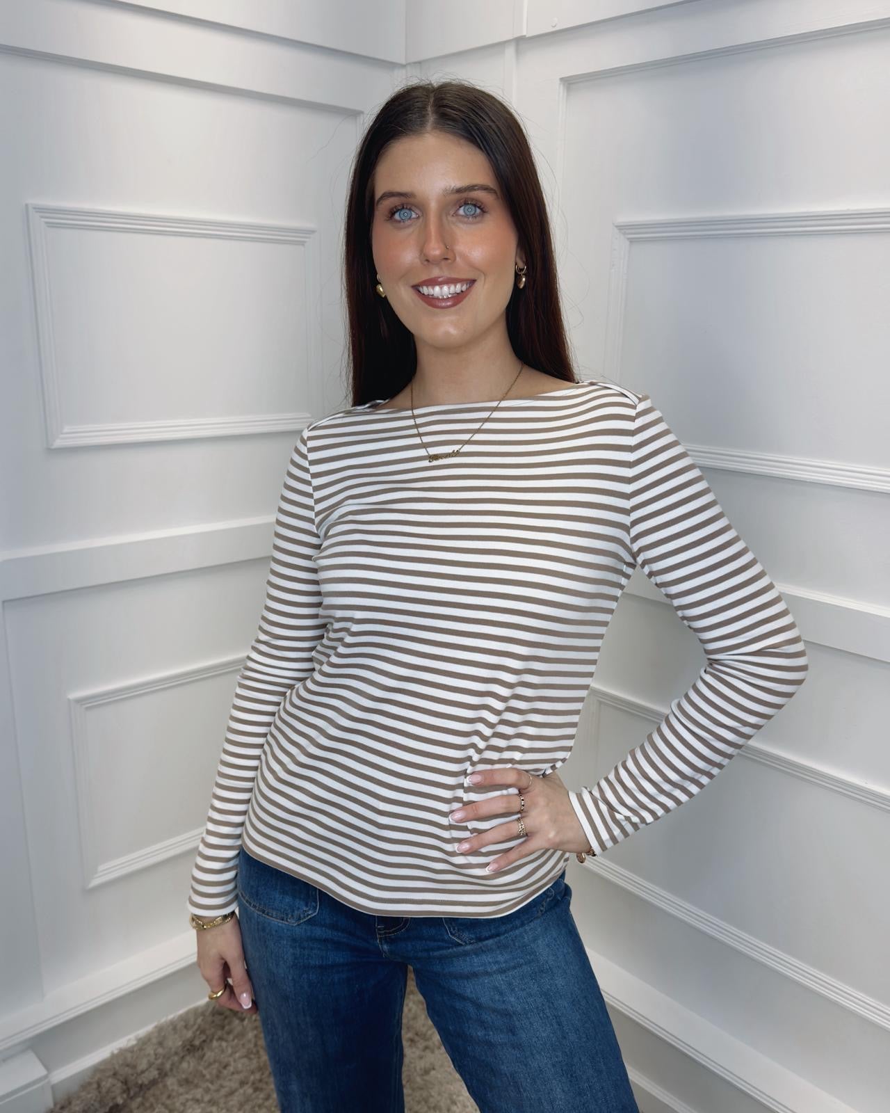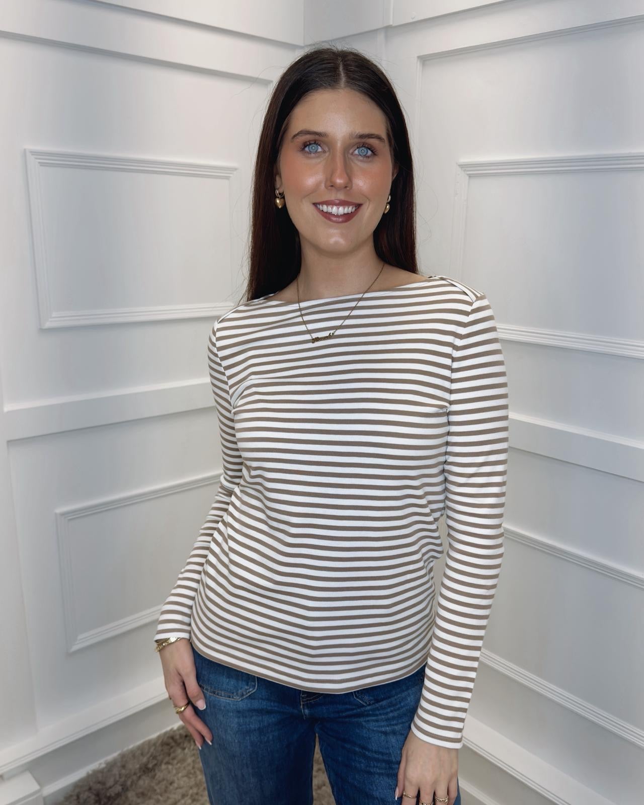 STREET ONE Striped Top - Light Terra Mocha