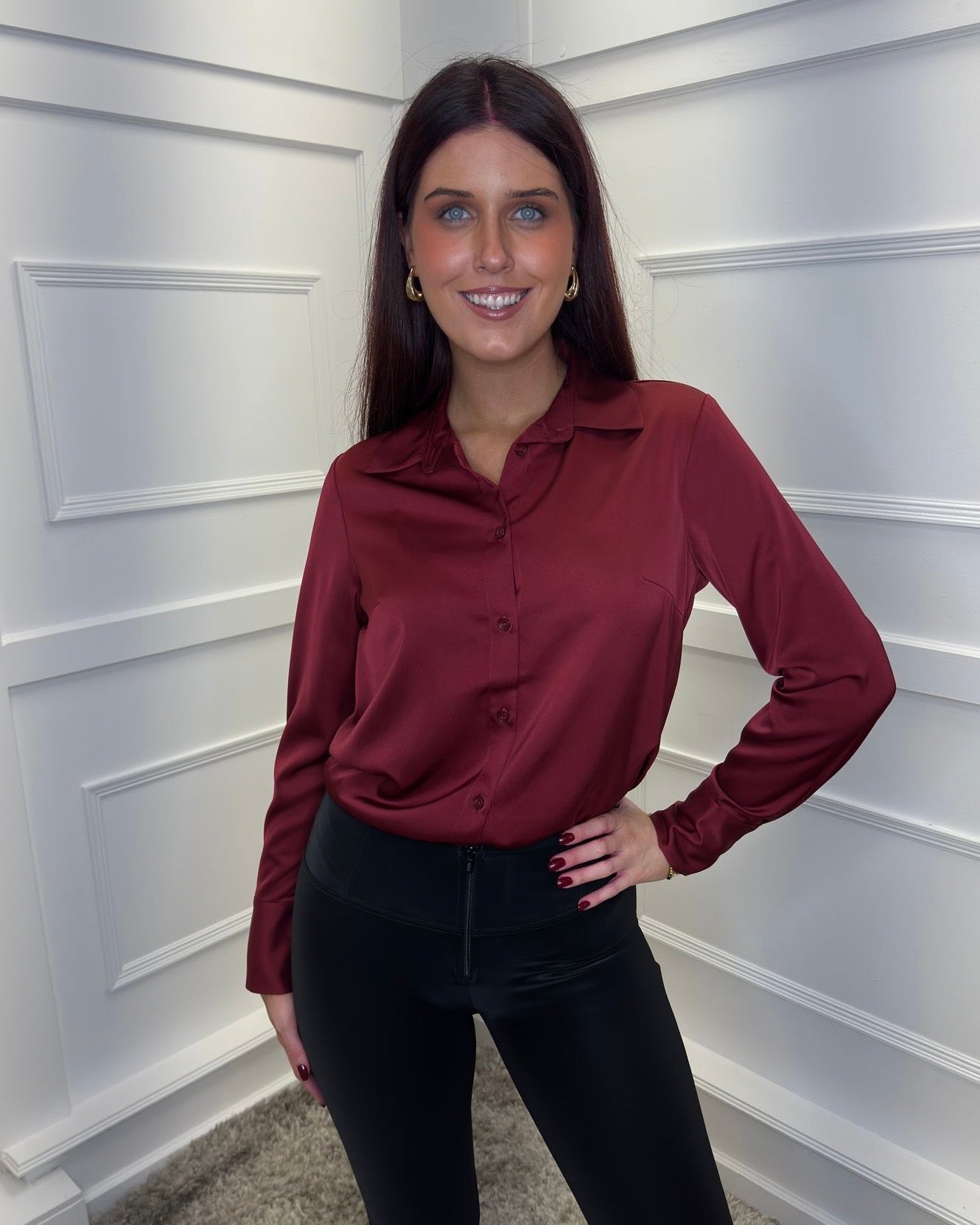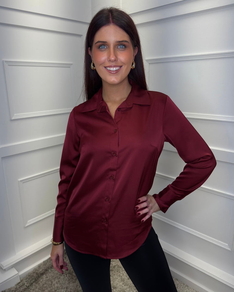 Lauren Satin Button Up Shirt - Wine