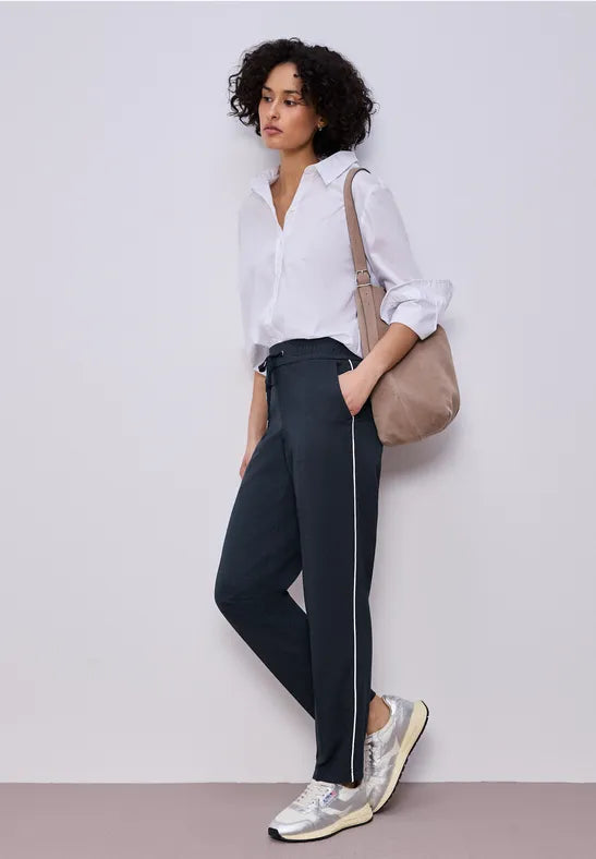 STREET ONE 28 INCH LEG Bonny Trousers with Tape Detail - Navy